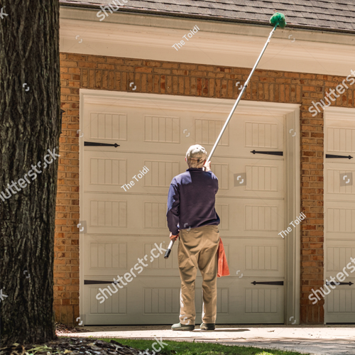 Sweep the soffits and high places of your home to prevent spiders, wasps, and other